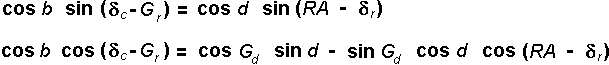Right Ascension, (Gr) and the galactic declination, (Gd) of a star viewed